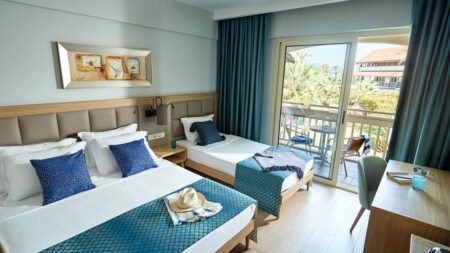 Dit hotel was voorheen het clubgedeelte van het populaire, vertrouwde Aqua Fantasy, maar dan in een heel nieuw jasje. Ruim opgezet, maar alles binnen handbereik. Het eerste wat je opvalt is het kleurrijke, enorme waterpark. Met meer dan 30 glijbanen ben je, jong of oud, nooit uitgeroetsjt. Van tube tot trechter en boomerang; dit park heeft niets voor niets Splashfactor 10. Terwijl de kinderen zich lekker uitleven in het waterpark, pakken de ouders een yogales mee of relaxen heerlijk op een ligbed aan het strand. En ideaal is dat de kamers om de hoek gelegen zijn. Over de kamers gesproken; deze zijn volledig gerenoveerd en ideaal voor gezinnen, want er is ruimte voor 5 personen! De vele kindvriendelijke faciliteiten maken dit tot een ideale keuze voor een vakantie met het gehele gezin. Zo is er een professioneel entertainmentteam, en het eten is ook een feest de kids genieten 3 keer per dag van een speciaal kinderbuffet. En vergeet ook zeker niet een avond te reserveren in de moderne Taverna, waar de kok heerlijke Mediterraanse hapjes bereidt.