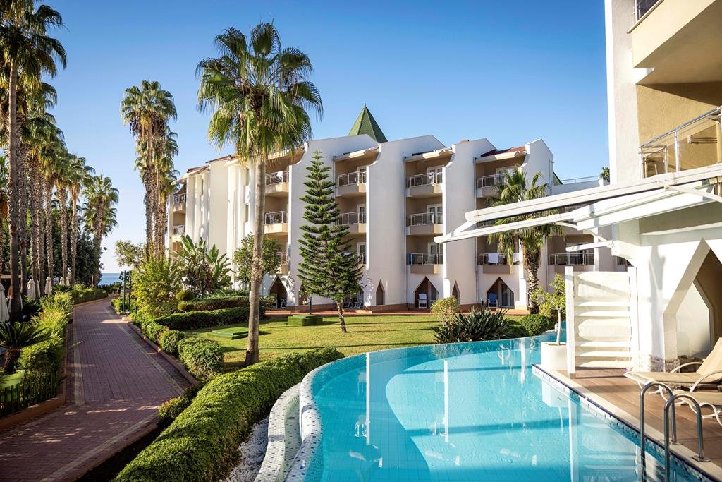Dit hotel in Turkije is zo ingericht dat families, maar ook stellen zich hier op hun gemak voelen. Midden in Pascha Bay ligt het zwembad, dat omgeven wordt door de tropische tuin. Lig je liever aan het strand? Dan is dit hotel uitstekend voor jou! Het hotel ligt aan het strand dus een paar stappen verder en je loopt in het heerlijke Turkse zand. Voor de kids heeft het hotel verschillende glijbanen, dus ook zij zullen zich zeker vermaken!