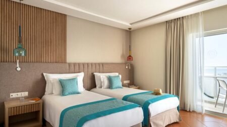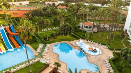Je moet hier echt naartoe! Dit hotel is de perfecte plek voor een relaxte vakantie het ligt op een steenworp van het strand en is omringd door een tropische tuin. De kinderen hebben de tijd van hun leven met de glijbanen in het zwembad, terwijl jij een potje tennis speelt, yoga doet of lekker relaxt in de spa. Het centrum van Agadir ligt vlakbij, dus je wandelt zo de stad in. En het eten? Zó lekker! Van het internationale buffet tot Marokkaanse specialiteiten. En 's avonds is het feest met een drankje aan de bar, een show of een gezellig potje bingo.