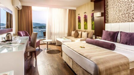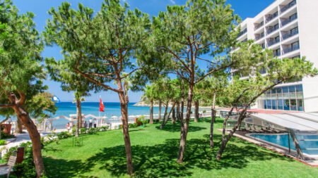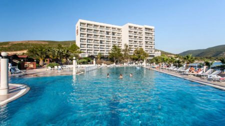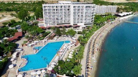 Tusan Beach ligt op een rustige plek aan de Egeïsche Zee en biedt een panoramisch uitzicht waar je niet snel op uitgekeken raakt. Met een zandstrand pal voor de deur, weelderige tuinen en een gezellige promenade in de buurt is dit de ideale plek voor wie wil genieten van zon, zee en comfort. Of je nu komt om te ontspannen op een ligbed of liever actief bezig bent met een watersport, hier kan het allemaal. Dankzij het All Inclusive concept staat er bijna de hele dag door wat lekkers voor je klaar en kun je je volledig focussen op vakantie vieren. Het resort heeft meerdere zwembaden, sportfaciliteiten en dagelijks entertainment voor jong en oud. Binnen een paar minuten sta je in het levendige Kusadasi, maar terug bij Tusan Beach is het vooral rust, ruimte en relaxen met uitzicht op zee.