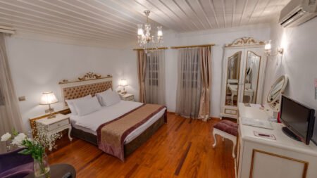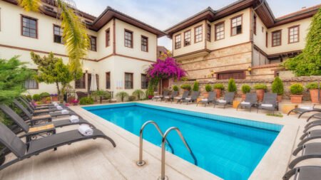 Midden in de sfeervolle wijk Kaleiçi vind je Tuvana Hotel, een boetiekhotel waar moderne luxe perfect samengaat met de charme van een 18e-eeuws herenhuis. Omringd door de rijke geschiedenis van Antalya verblijf je hier op loopafstand van iconische plekken zoals de Hadrianuspoort en de oude haven. De tuin van Tuvana is een echte verborgen parel. Ontspan aan het zwembad, omgeven door palmbomen en kleurrijke bloemen, of geniet van een tropische cocktail aan de bar. Het is de perfecte plek om helemaal tot rust te komen. Ook op culinair gebied zit je hier goed. Met toprestaurants als Seraser Fine Dining, il Vicino Pizzeria en Pio Gastro Bar & Bistro wordt eten een ware beleving. Of je nu op zoek bent naar historie, ontspanning of smaakvolle gerechten, bij Tuvana Hotel vind je alles voor een onvergetelijke vakantie.