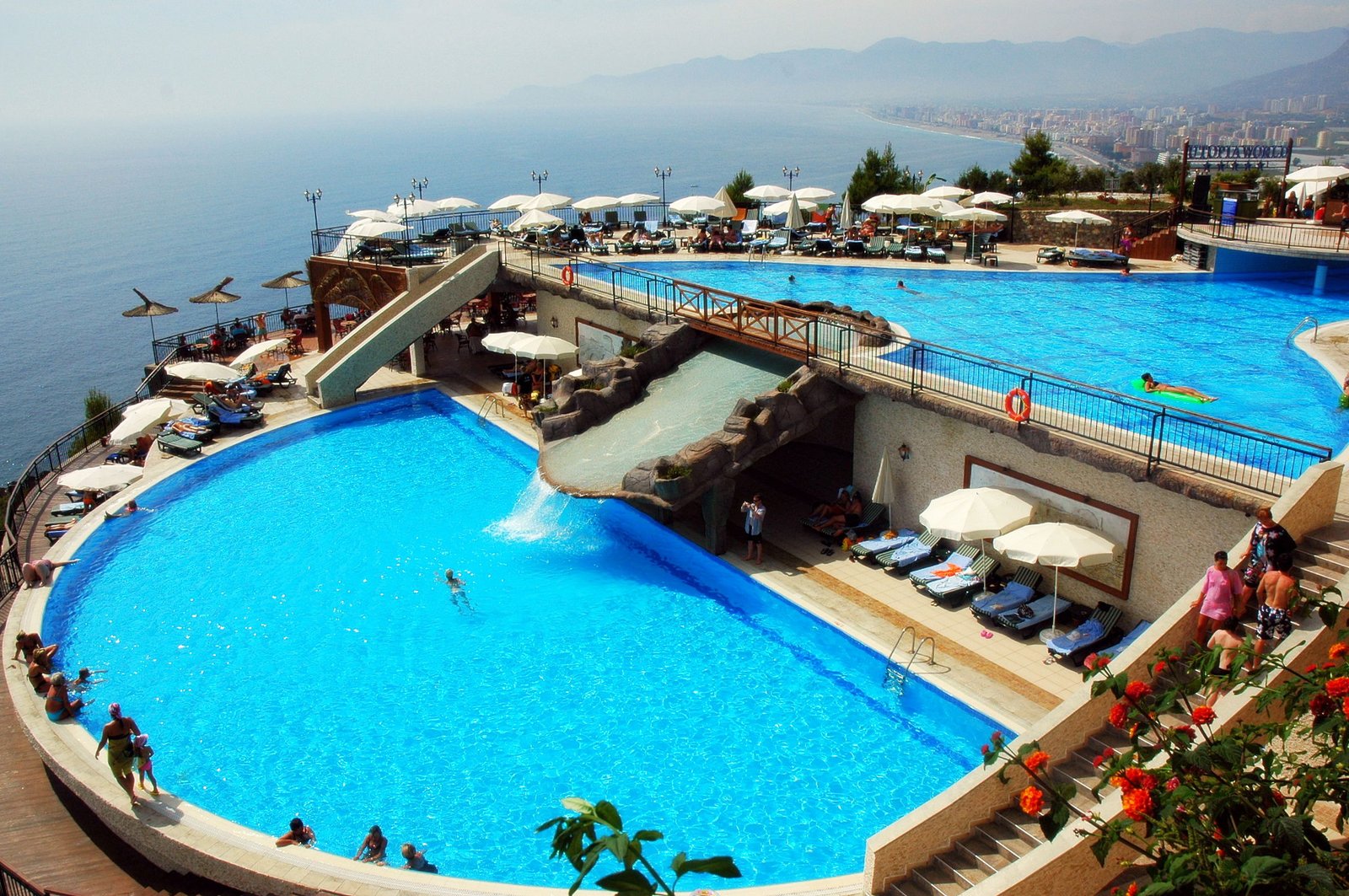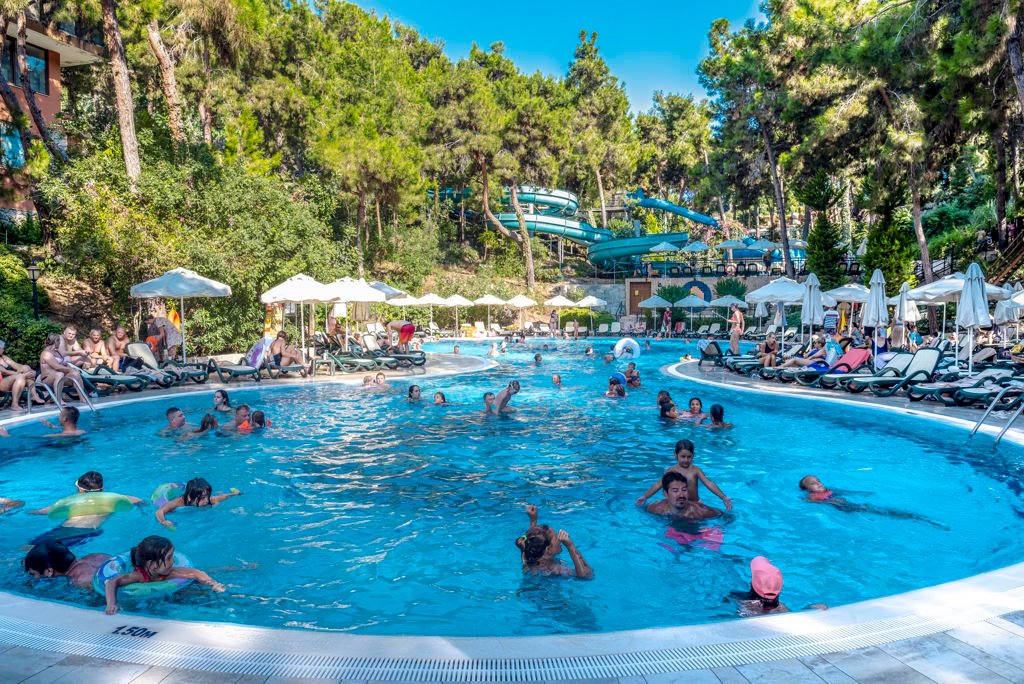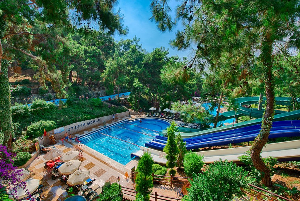 Utopia World is een fantastisch 5-sterren hotel perfect voor jong en oud. Utopia World is gebouwd op een heuvel, waar je een schitterend uitzicht hebt over de golvende zee en op de prachtige zonsondergang. Uniek aan dit hotel zijn de meerdere zwembaden en een eigen aquapark met vette waterglijbanen en zelfs een raftingbaan! Even geen zin in een dagje langs het zwembad? Geniet dan onder de zalige Turkse zon op het mooie privéstrand met een goed boek. Jong en oud zal zich hier uitstekend vermaken door de dagelijkse animatie en de live muziek in de avond! Verblijf op basis van Ultra All Inclusive en geniet van al het lekkere eten in het ruim opgezette buffetrestaurant. Ook zijn er 3 à-la-carte restaurants met o.a. voortreffelijke Italiaanse gerechten. Een heerlijk verfrissend drankje kan je halen in één van de zes bars, keuze genoeg dus! Even weg van de realiteit? Gun jezelf dan een onvergetelijke vakantie in het luxe Utopia World hotel!