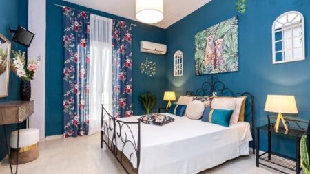 Ontdek dit exclusieve boetiekhotel in het charmante Acharavi op Corfu, op loopafstand van een van de mooiste stranden van het eiland. Het biedt de perfecte mix van gastvrijheid en romantiek, met unieke suites die levendige kleuren en zorgvuldig geselecteerde meubels combineren. De tuinen hebben rustige zithoekjes om te ontspannen, of geniet van de zon bij het zwembad met een drankje van de barman. Het bruisende centrum van Acharavi, met winkels, restaurants en uitgaansgelegenheden ligt om de hoek. Vervelen is hier onmogelijk.