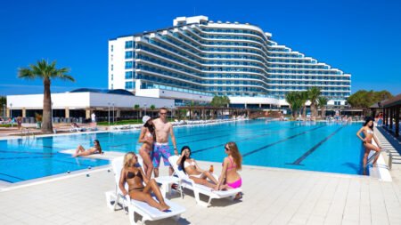 Bij Venosa Beach Resort in Didim staat alles in het teken van comfort, plezier en ontspannen aan zee. Dit populaire hotel ligt direct aan een privéstrand en is van alle gemakken voorzien voor een heerlijke vakantie met het hele gezin. Grote zwembaden, glijbanen, een kinderbad en een gezellige miniclub zorgen voor volop waterpret en vermaak. De ruime kamers zijn comfortabel ingericht en in de restaurants proef je elke dag weer iets lekkers. Dankzij de All Inclusive formule staat er altijd iets klaar, van buffet tot à-la-carte. Of je nu wilt ontspannen in de hamam, beachvolleyballen op het strand of gewoon even helemaal niets doen op een ligbedje in de zon bij Venosa Beach Resort kan het allemaal.