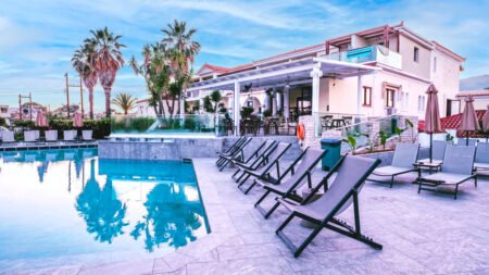 Winter Wanneer je tussen 15-04-2023 en 31-10-2025 in deze accommodatie verblijft, is onderstaande informatie van toepassing. * Ligging * Openbaar strand op circa 500 meter * Zandstrand * Centrum van Kalamaki op circa 200 meter * Dichtstbijzijnde winkel op circa 200 meter * Dichtstbijzijnde restaurant op circa 200 meter * Dichtstbijzijnde bar op circa 200 meter * Zakynthos City op circa 5 kilometer * Bushalte op circa 200 meter * Algemeen & faciliteiten * 1 gebouw * Maximaal 3 verdiepingen * 70 kamers * Receptie * 24 uur per dag * Lobby * Geen liften * Bagageruimte * Wifi in alle openbare ruimtes * Wasservice tegen betaling * Doktersservice tegen betaling * Tuin * Privé parkeergelegenheid * Restaurants & bars * Buffetrestaurant * Roomservice tegen betaling * 3 drinkgelegenheden * Bar * Pool-/snackbar * Poolbar * Activiteiten & ontspanning * Spa Center * Massages op afspraak tegen betaling * Schoonheidsbehandelingen op afspraak tegen betaling * Kapsalon tegen betaling * Livemuziek * Eén keer per week * Zwembaden * 2 buitenzwembaden * 1 volwassenenbaden * Bij één van deze zwembaden geldt een minimumleeftijd van 18 jaar * Zoetwater * Buitenzwembad voor kinderen * Zoetwater * Zonneterras * Ligbedden met matrasjes gratis * Parasol gratis * Badhanddoekenservice tegen betaling * Kinderfaciliteiten * Babybedje op aanvraag via ons contact center * Babysitservice tegen betaling * ter plaatse op aanvraag * Verzorging * Logies & Ontbijt * Ontbijt in buffetvorm * Goed om te weten * Huisdieren zijn niet toegestaanHotelkamers * 2-persoonskamer Standaard DZ * Oppervlakte circa 18 m² * Tuinzicht * Airconditioning tegen betaling * Kluisje tegen betaling * Televisie * Telefoon tegen betaling * Eet- en drinkfaciliteiten * Koffie- en theefaciliteiten * Mini koelkast * Minibar tegen betaling * Badkamer met bad of douche, toilet, föhn, badjassen en badslippers * Wifi * Balkon of terras (zitje)