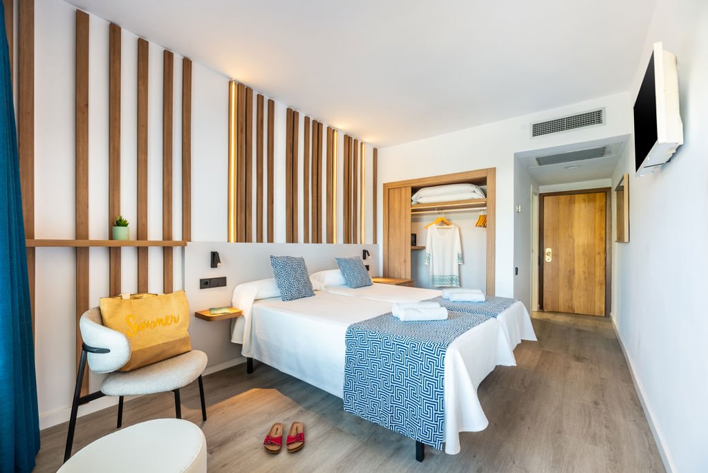 Zomer Wanneer je tussen 01-04-2025 en 26-10-2025 in deze accommodatie verblijft, is onderstaande informatie van toepassing. * Ligging * In het centrum van Peguera * Gelegen aan het openbare strand (Gran Tora) * Zandstrand * Ligbedden tegen betaling * Parasol tegen betaling * Dichtstbijzijnde winkel op circa 300 meter * Dichtstbijzijnde restaurant op circa 100 meter * Dichtstbijzijnde bar op circa 300 meter * Santa Ponsa op circa 10 kilometer * Bushalte op circa 100 meter * Algemeen & faciliteiten * Kindvriendelijk complex * 1 gebouw * Maximaal 9 verdiepingen * 443 kamers * Receptie * 24 uur per dag * Lobby * 4 liften * Bagageruimte * Wifi in alle openbare ruimtes * Winkel * Doktersservice tegen betaling * Privé parkeergelegenheid tegen betaling * Openbare parkeergelegenheid * Restaurants & bars * Buffetrestaurant * 3 drinkgelegenheden * 3 bars * Activiteiten & ontspanning * Beachvolleybal * Biljart tegen betaling * Boccia * Darts * Fitness * Tafeltennis * Yoga * Spafaciliteiten * Sauna * Massages tegen betaling * Animatie * 7 keer per week * Shows * Livemuziek * Zwembaden * 2 buitenzwembaden * Zoetwater * Eén van deze zwembaden is verwarmd tussen ca. dinsdag 14 oktober 2025 en maandag 4 mei 2026 * Buitenzwembad voor kinderen * Zoetwater * Binnenzwembad * Verwarmd tussen ca. woensdag 15 oktober 2025 en dinsdag 5 mei 2026 * Zonneterras * Ligbedden * Parasol * Badhanddoekenservice tegen betaling en met borg * Kinderfaciliteiten * Mini club (4-12 jaar) * 6 keer per week * Kinderen tussen een bepaalde leeftijd zijn welkom onder begeleiding van een volwassene * Minidisco * Babybedje op aanvraag via ons contact center * Verzorging * Logies * Logies & Ontbijt * Ontbijt in buffetvorm * Halfpension * Ontbijt in buffetvorm * Diner in buffetvorm * All Inclusive * Ontbijt in buffetvorm (07.30-10.30 uur) * Laat ontbijt in buffetvorm (11.00-12.00 uur) * Lunch in buffetvorm (13.00-15.00 uur) * Diner in buffetvorm (18.30-21.30 uur) * Snacks (11.00-18.00 uur) * Koffie, thee & koekjes (11.00-18.00 uur) * IJs (13.00-15.00 en 18.30-21.30) * Selectie lokale (non-)alcoholische drankjes (10.00-23.00 uur) * Goed om te weten * Duurzaamheidslabel(s): Biosphere responsible tourism en EcostarsHotelkamers * 1-persoonskamer Standaard Zeezicht EZM * Oppervlakte circa 17 m² * Zeezicht * Airconditioning * Kluisje * Televisie * Telefoon tegen betaling * Eet- en drinkfaciliteiten * Mini koelkast * Badkamer met douche in bad, toilet en föhn * Wifi * Balkon of terras (zitje) * 2-persoonskamer Standaard Zijzeezicht DZ1 * Oppervlakte circa 19 m² * Gerenoveerd * Zijzeezicht * Airconditioning * Kluisje * Televisie * Telefoon tegen betaling * Eet- en drinkfaciliteiten * Mini koelkast * Badkamer met douche in bad, toilet en föhn * Wifi * Balkon of terras (zitje) * 2-persoonskamer Standaard Zijzeezicht DZ2 * Oppervlakte circa 19 m² * Gerenoveerd * Zijzeezicht * Airconditioning * Kluisje * Televisie * Telefoon tegen betaling * Eet- en drinkfaciliteiten * Mini koelkast * Badkamer met douche in bad, toilet en föhn * Wifi * Balkon of terras (zitje) * 2-persoonskamer Standaard Zeezicht DZ3 * Oppervlakte van circa 20 m² * Gerenoveerd * Zeezicht * Airconditioning * Kluisje * Televisie * Telefoon tegen betaling * Eet- en drinkfaciliteiten * Mini koelkast * Badkamer met douche, toilet en föhn * Wifi * Balkon of terras (zitje) * 2-persoonskamer Standaard Zeezicht DZ4 * Oppervlakte van circa 20 m² * Gerenoveerd * Zeezicht * Airconditioning * Kluisje * Televisie * Telefoon tegen betaling * Eet- en drinkfaciliteiten * Mini koelkast * Badkamer met douche, toilet en föhn * Wifi * Balkon of terras (zitje)