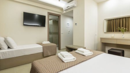 Zomer Wanneer je tussen 01-05-2025 en 15-10-2025 in deze accommodatie verblijft, is onderstaande informatie van toepassing. * Ligging * In het centrum van Laganas * Openbaar strand op circa 400 meter * Zandstrand * Dichtstbijzijnde winkel op circa 20 meter * Dichtstbijzijnde restaurant op circa 20 meter * Dichtstbijzijnde bar op circa 20 meter * Cameo Island op circa 2 kilometer * Kalamaki Beach op circa 1,5 kilometer * Zakynthos City op circa 8 kilometer * Bushalte op circa 20 meter * Taxistandplaats op circa 20 meter * Algemeen & faciliteiten * 2 gebouwen * Maximaal 2 verdiepingen * 31 kamers * Receptie * Op gezette tijden geopend * Bagageruimte * Wifi in alle openbare ruimtes gratis * Tuin * Privé parkeergelegenheid tegen betaling * Restaurants & bars * Buffetrestaurant * Drinkgelegenheden * Bar * Activiteiten & ontspanning * Biljart * Tafeltennis * Zwembaden * Buitenzwembad * Zoetwater * Zonneterras * Ligbedden gratis * Parasol gratis * Badhanddoekenservice tegen betaling * Kinderfaciliteiten * Babybedje op aanvraag via ons contact center * Verzorging * Logies & Ontbijt * Ontbijt in buffetvormHotelkamers * 2-persoonskamer Standaard DZ * Oppervlakte tussen 22 en 28 m² * Airconditioning * Kluisje * Televisie * Eet- en drinkfaciliteiten * Mini koelkast * Badkamer met douche, toilet en föhn * Wifi * Balkon of terras (zitje) * 2-persoonskamer Standaard Zwembadzicht DZP * Oppervlakte tussen 22 en 28 m² * Zwembadzicht * Airconditioning * Kluisje * Televisie * Eet- en drinkfaciliteiten * Mini koelkast * Badkamer met douche, toilet en föhn * Wifi * Balkon of terras (zitje)