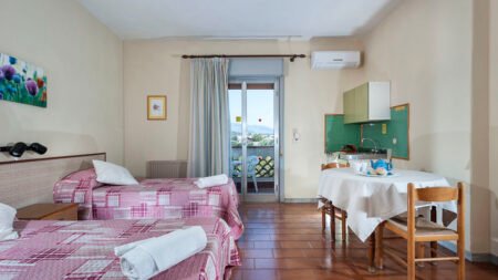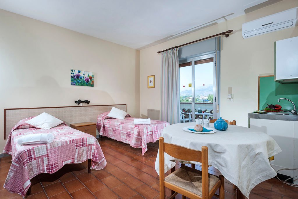 Zomer Wanneer je tussen 15-04-2025 en 20-10-2025 in deze accommodatie verblijft, is onderstaande informatie van toepassing. * Ligging * Openbaar strand op circa 600 meter * Zandstrand * Centrum van Giardini Naxos op circa 600 meter * Dichtstbijzijnde winkel op circa 600 meter * Dichtstbijzijnde restaurant op circa 600 meter * Dichtstbijzijnde bar op circa 600 meter * Taormina op circa 6 kilometer * Bushalte op circa 150 meter * Algemeen & faciliteiten * 1 gebouw * Maximaal 2 verdiepingen * 20 kamers * Receptie * op circa 350 meter * Geen liften * Wifi in alle openbare ruimtes * Tuin * Privé parkeergelegenheid tegen betaling * Op basis van de beschikbaarheid ter plaatse * Openbare parkeergelegenheid tegen betaling * Zwembaden * Buitenzwembad * Zoetwater * Zonneterras * Ligbedden gratis * Parasol gratis * Badhanddoekenservice tegen betaling * Verzorging * LogiesHotelkamers * Studio S * Oppervlakte circa 27 m² * Tuinzicht * Airconditioning * Kluisje * Satelliettelevisie * Kitchenette * 1-pits kooktoestel * Mini koelkast * Badkamer met douche, toilet en föhn * Wifi * Balkon of terras (zitje) * 2-kamerappartement Standaard 2A1 * Oppervlakte circa 32 m² * Tuinzicht * Woon-/slaapkamer * Eén slaapkamer * Airconditioning * Kluisje * Satelliettelevisie * Kitchenette * 1-pits kooktoestel * Mini koelkast * Badkamer met douche, toilet en föhn * Wifi * Balkon of terras (zitje) * 2-kamerappartement Standaard 2A2 * Oppervlakte circa 35 m² * Tuinzicht * Woon-/slaapkamer * Eén slaapkamer * Airconditioning * Kluisje * Satelliettelevisie * Kitchenette * 1-pits kooktoestel * Mini koelkast * Badkamer met douche, toilet en föhn * Wifi * Balkon of terras (zitje)