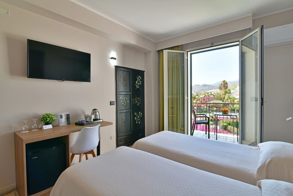 Zomer Wanneer je tussen 01-05-2025 en 31-10-2025 in deze accommodatie verblijft, is onderstaande informatie van toepassing. * Ligging * Openbaar strand op circa 50 meter * Dichtstbijzijnde winkel op circa 20 meter * Dichtstbijzijnde restaurant op circa 20 meter * Dichtstbijzijnde bar op circa 20 meter * Giardini Naxos op circa 800 meter * Bushalte op circa 200 meter * Taxistandplaats op circa 30 meter * Treinstation op circa 4 kilometer * Algemeen & faciliteiten * 1 gebouw * Maximaal 5 verdiepingen * 38 kamers * Receptie * 24 uur per dag * Lift * Bagageruimte * Wifi in alle openbare ruimtes * Verzorging * Logies & Ontbijt * Ontbijt in buffetvormHotelkamers * 2-persoonskamer Standaard DZ * Oppervlakte circa 16 m² * Airconditioning * Kluisje * Televisie * Eet- en drinkfaciliteiten * Mini koelkast * Badkamer met douche, toilet en föhn * Wifi * Balkon of terras (zitje) * 2-persoonskamer Superior Zeezicht DSM * Oppervlakte circa 16 m² * Zeezicht * Airconditioning * Kluisje * Televisie * Eet- en drinkfaciliteiten * Mini koelkast * Badkamer met douche, toilet en föhn * Wifi * Balkon of terras (zitje) * 2-kamerappartement Tuinzicht 2A1 * Oppervlakte circa 30 m² * Tuinzicht * Woonkamer * Airconditioning * Kluisje * Televisie * Kitchenette * 1-pits kooktoestel * Magnetron * Broodrooster * Mini koelkast * Badkamer met douche, toilet en föhn * Wifi * Balkon of terras (zitje) * 2-kamerappartement Zeezicht 2A2 * Oppervlakte circa 30 m² * Zeezicht * Woonkamer * Airconditioning * Kluisje * Televisie * Kitchenette * 1-pits kooktoestel * Magnetron * Broodrooster * Mini koelkast * Badkamer met douche, toilet en föhn * Wifi * Balkon of terras (zitje) * 2-kamerappartement Voordeel 2AE * Speciaal tarief * Locatie, formaat, uitzicht en/of faciliteiten kunnen afwijken ten opzichte van andere kamertypes * Oppervlakte circa 30 m² * Woonkamer * Airconditioning * Kluisje * Televisie * Kitchenette * 1-pits kooktoestel * Magnetron * Broodrooster * Mini koelkast * Badkamer met douche, toilet en föhn * Wifi * Balkon of terras (zitje)