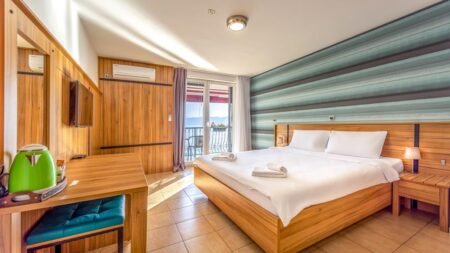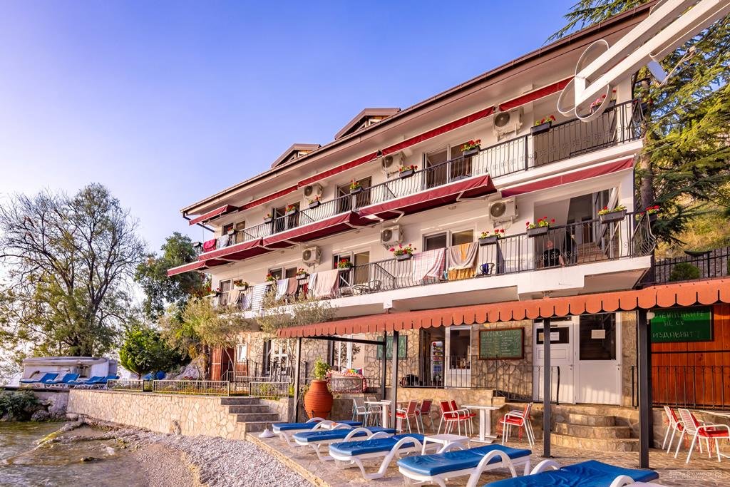 Dit geliefde hotel ligt direct aan het Meer van Ohrid. Je zou bijna zeggen "in het meer". Je stapt het hotel uit en je staat direct op het strand. Je "eigen" strand met ligbedden en parasols. Je kijkt over het authentieke dorpje. Er wonen ongeveer 300 inwoners, er zijn maar een paar kleinschalige hotels en vijf sfeervolle, kleine restaurants. Met een zonsondergang en prachtig uitzicht is dit toch een ideale plek voor je vakantie.
