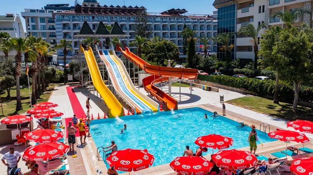 Voor families is dit resort al jaren een favoriet onder de Turkse zon. Heel veel zwemplezier met niet één, maar twee zwembaden. Neem een frisse duik of probeer de glijbanen uit. De mini's spelen naar hartenlust in de speeltuin en de miniclub. Het plezier spat er van af. Daar heb je geen omkijken meer naar. De hele dag worden er leuke activiteiten rond het zwembad georganiseerd. Even geen zin in al die drukte? Zoek dan een lekker bedje uit op strand om weer even op te laden, het is om de hoek.