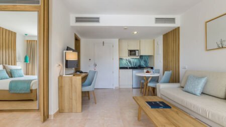 Welkom in Zafiro Palmanova & Spa, een uitstekend 4-sterren appartementencomplex in Palmanova! Op slechts 200 meter van het heerlijke zandstrand en het gezellige centrum dé ideale ligging. Geniet van de uitstekende service waarbij de drankjes aan tafel worden geserveerd, de uitstekende buffetten, de prima faciliteiten zoals het Zen, Spa & Wellness Centre, de heerlijke zwembaden en de ruime premium 2-kamerappartementen. Volop vertier voor de kinderen? Jazeker! Kijk ze eens genieten in de spash pool, het piratenschip, op de glijbaantjes en bij de miniclub. Alle ingrediënten zijn aanwezig voor jouw dik verdiende vakantie. Geniet van een onvergetelijke ervaring in Zafiro Palmanova & Spa!