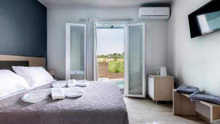 De kamers en suites zijn eenvoudig en verzorgd ingericht, met alles wat je nodig hebt voor een comfortabel verblijf. Kies bijvoorbeeld voor een tweepersoonskamer, een suite met zeezicht of verwen jezelf met een kamer met privézwembad. Er is voor ieder wat wils, of je nu op zoek bent naar eenvoud of een beetje extra luxe.