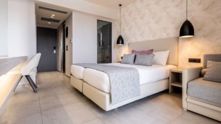 Zante Sun Resort: Ultieme luxe en ontspanning op Zakynthos. Ervaar de perfecte zonvakantie in Zante Sun Resort, een stijlvol en modern resort op het prachtige eiland Zakynthos. Gelegen nabij het charmante Agios Sostis, bevind je je op loopafstand van het strand van Agios Sostis (slechts 80 meter) en op ca. 220 meter van de beroemde baai van Laganas. Kom volledig tot rust op een ligbedje bij een van de drie zwembaden, geniet van een verfrissend drankje aan de poolbar en laat je verwennen door de stralende Griekse zon. Of je nu alleen reist, samen met je partner of met het hele gezin, Zante Sun Resort biedt de ideale combinatie van luxe, ontspanning en authentieke Griekse gastvrijheid. Tijdens je verblijf op basis van All Inclusive geniet je elke dag van een uitgebreid buffet in het sfeervolle restaurant en verblijf je in een elegante, moderne kamer met alle comfort. De vriendelijke en servicegerichte medewerkers van Zante Sun Resort zorgen ervoor dat je niets tekortkomt, zodat je vakantie echt onvergetelijk wordt. Het is dan ook geen verrassing dat Zante Sun Resort al jaren hoog gewaardeerd wordt door onze gasten. Boek nu en beleef zelf de magie van Zakynthos!