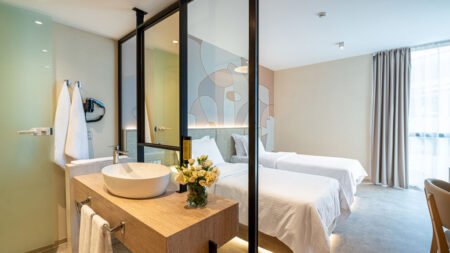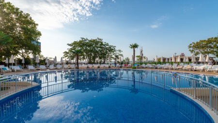 Hotel Zenith straalt in 2025 als nooit tevoren, na een complete renovatie in 2024 die modern comfort moeiteloos combineert met de natuurlijke schoonheid van Sunny Beach. Dit stijlvolle 4-sterrenhotel ligt op een rustige plek aan de noordkant van de badplaats, met het strand op steenworp afstand en een adembenemend uitzicht op zee. Hier ervaar je de perfecte balans tussen ontspanning en levendigheid. De lichte, frisse kamers zijn geïnspireerd op de natuur en de zee, met zachte kleuren en natuurlijke vormen. Veel kamers hebben uitzicht op zee, terwijl het zwembad uitnodigt tot een verfrissende duik met een geweldig uitzicht. Of je nu geniet van een cocktail aan de bar, een massage boekt of lekker neerstrijkt aan het zwembad, hier kom je helemaal tot rust. Wil je eropuit? Het bruisende centrum van Sunny Beach met gezellige kermissen, restaurants en bars ligt op slechts 2 kilometer afstand. Bij Zenith Hotel hoef je niet te kiezen tussen ontspanning en avontuur – hier combineer je ze moeiteloos!