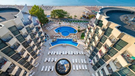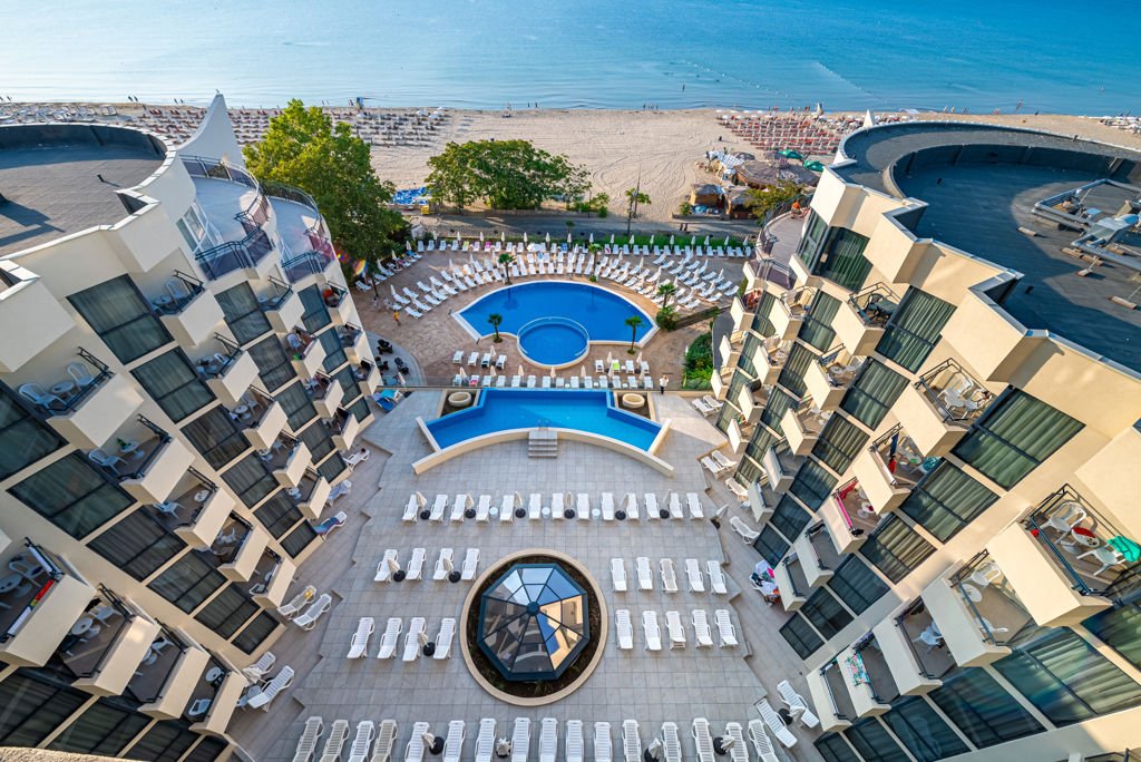 Zomer Wanneer je tussen 01-05-2025 en 30-09-2025 in deze accommodatie verblijft, is onderstaande informatie van toepassing. * Ligging * Gelegen aan het openbare strand * Zandstrand * Dichtstbijzijnde winkel op circa 20 meter * Dichtstbijzijnde restaurant op circa 200 meter * Dichtstbijzijnde bar op circa 200 meter * Aquapark op circa 2 kilometer * Nessebar op circa 8 kilometer * Sunny Beach op circa 2 kilometer * Bushalte op circa 600 meter * Algemeen & faciliteiten * Geheel gerenoveerd in 2024 * 1 gebouw * Maximaal 10 verdiepingen * 281 kamers * Receptie * 24 uur per dag * Lobby * 3 liften * Bagageruimte * Wifi in alle openbare ruimtes * Doktersservice tegen betaling * Tuin * Privé parkeergelegenheid tegen betaling * Restaurants & bars * Buffetrestaurant * Snackbar * Drinkgelegenheid * Lobbybar * Activiteiten & ontspanning * Aerobics * Biljart tegen betaling * Darts * Fitness * Spafaciliteiten * Massages tegen betaling * Animatie voor volwassenen * Animatie voor kinderen * Shows * Zwembaden * 2 buitenzwembaden * bij één van deze zwembaden toegang tegen betaling * Zoetwater * Buitenzwembad voor kinderen * Zoetwater * Zonneterras * Ligbedden * Parasol * Badhanddoekenservice gratis met borg * Kinderfaciliteiten * Minidisco * Babybedje op aanvraag via ons contact center * Verzorging * All Inclusive * Ontbijt in buffetvorm (07.30-10.00 uur) * Lunch in buffetvorm (12.30-14.30 uur) * Diner in buffetvorm (18.00-21.00 uur) * Snacks (10.30-11.30 en 14.30-17.30) * IJs (12.30-21.00 uur) * Middernachtsnack (21.30-22.30 uur) * Selectie alcoholische drankjes (10.00-23.00 uur) * Selectie non-alcoholische drankjes (07.00-23.00 uur) * Niet inbegrepen: * Geïmporteerde drankjesHotelkamers * 2-persoonskamer Standaard Landzicht DZL * Oppervlakte circa 25 m² * Landzicht * Woon-/slaapkamer * Slaapbank voor één persoon * Airconditioning * Kluisje * Televisie * Telefoon tegen betaling * Eet- en drinkfaciliteiten * Mini koelkast * Badkamer met inloopdouche, toilet en föhn * Wifi * Balkon of terras (zitje) * 2-persoonskamer Standaard Zeezicht DZM * Oppervlakte circa 25 m² * Zeezicht * Woon-/slaapkamer * Slaapbank voor één persoon * Airconditioning * Kluisje * Televisie * Telefoon tegen betaling * Eet- en drinkfaciliteiten * Mini koelkast * Badkamer met inloopdouche, toilet en föhn * Wifi * Balkon of terras (zitje) * Familiekamer Standaard FZ * Oppervlakte circa 40 m² * Landzicht * Twee standaardkamers met tussendeur * Airconditioning * Kluisje * Televisie * Telefoon tegen betaling * Eet- en drinkfaciliteiten * Mini koelkast * Badkamer met inloopdouche, toilet en föhn * Wifi * Balkon of terras (zitje)