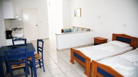 Zeus Appartementen op Samos is een comfortabele en gemoedelijke plek, gelegen op slechts 750 meter van het strand en op loopafstand van het centrum van Ireon. Het complex biedt een zwembad, een kinderzwembad en een poolbar waar je kunt ontspannen en genieten van een drankje. Met de rustige ligging en de vriendelijke sfeer is het de ideale place to be voor een ontspannen vakantie. Ireon is een charmant dorpje aan de kust van Samos, bekend om zijn rustige stranden en gezellige tavernes. Het is ideaal voor wie op zoek is naar een authentieke Griekse sfeer. Samos zelf is een prachtig eiland met groene bergen, wijngaarden en historische bezienswaardigheden. Bezoek bijvoorbeeld het beroemde Heraion, een oud heiligdom, of maak een wandeling door de prachtige natuur. Zeus Hotel is een prima uitvalsbasis om zowel Ireon als de rest van het eiland te ontdekken.